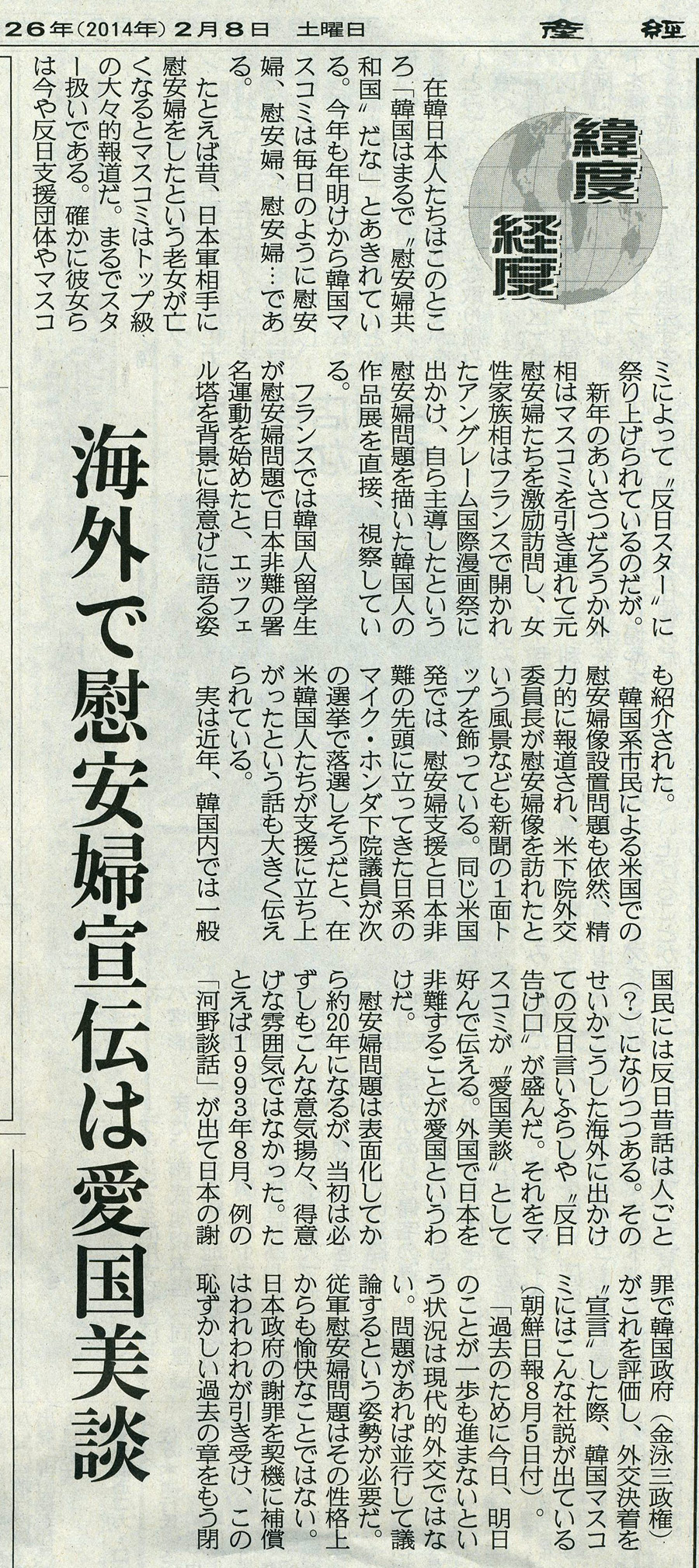![]() じてはどうか」以前は慰安婦問題を自らの間題として「愉快ではない恥ずかしい過去」とする声があり、それが堂々と言えた。しかし今や海外にまで出かけて日本非難で高揚する愛国主義だけが蔓延するなか、こんな"恥"の発想が出る余地はない。 慰安婦問題はこの時、外交的には解決しているはずだ。次の金大中大統領も1998年10月、小渕恵三首相との日韓共同宣言で日本が過去を謝罪、反省したことを高く評価し「これで過去は清算された」と語っている。慰安婦問題も外交問題にしないとの方針を明らかにしている。これらは当時、日韓双方のマスミで伝えられているが、韓側はそれを無視し間題を蒸返してきたのだ。日本の国感情に疲労感が残るのは当然だろう。 年初に元慰安婦の老女が一人亡くなったことで、韓国政府への登録者は55人になった。これまでの登録者総数237人。うち過去に日本官民共同の「アジア女性 金」から補償と歴代首相の労・謝罪の書簡を受け取った人が61人いる(ソウルの日大使館筋)。これを拒否し老女たちと支援団体によって今まで問題が続いている。コトの経過を知れば、韓国側の無理がよく分かる。 |