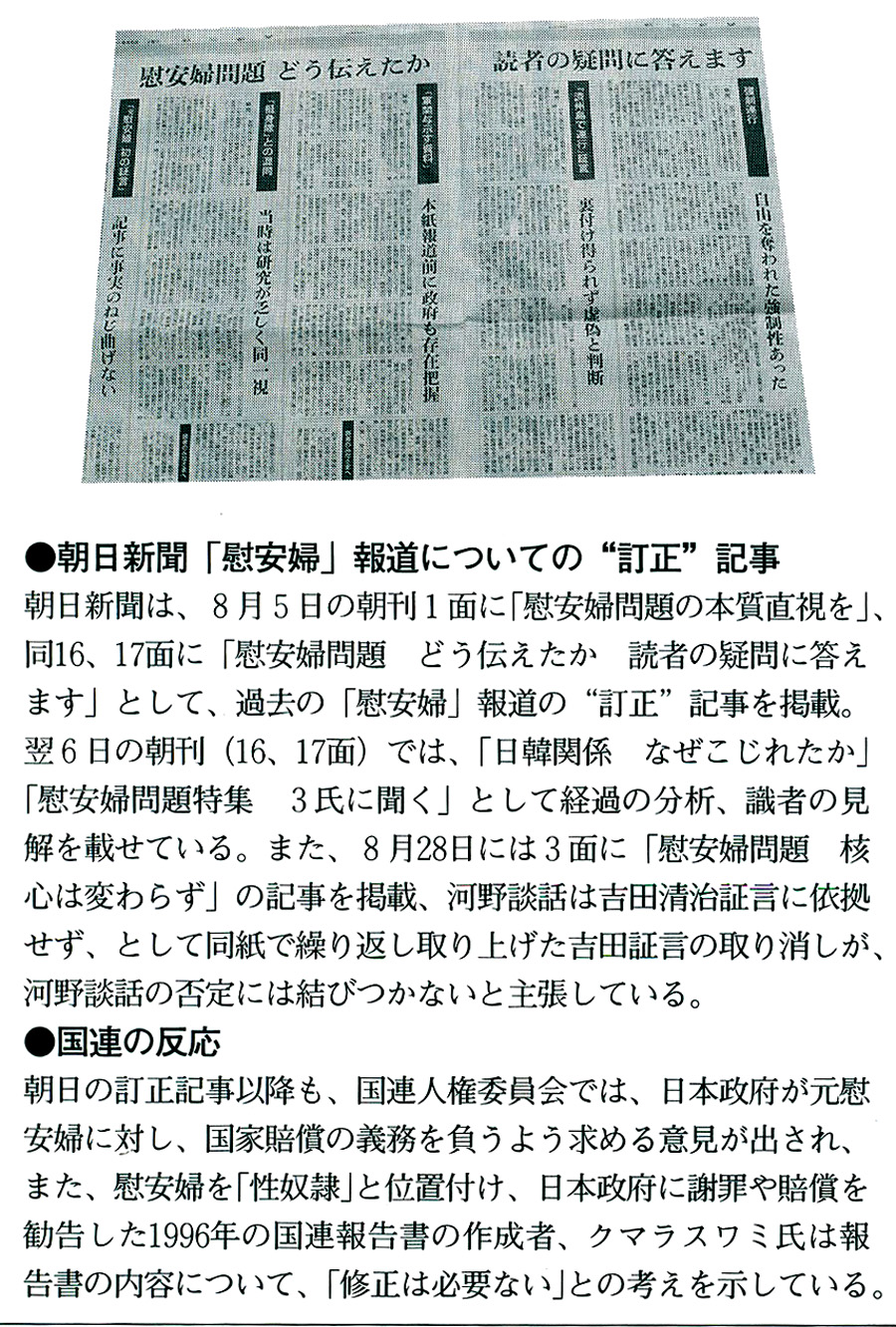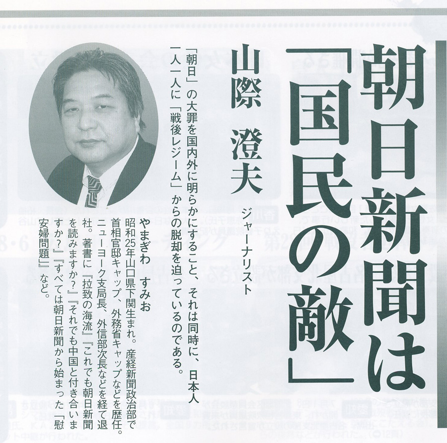 ![]() ★捏造とごまかし 朝日新聞が、古田清治の「従軍慰安婦の強制連行」の"証言"をようやく「虚偽」だと認めて取り消した。最初の掲載から三十二年ぶりのことだった。しかし、取り消しはしたがそのどこにも読者への明確な謝罪の言葉はない。ないどころか、今度は、強制連行ではなく戦地での売春自体が問題だと言いだした。〈慰安婦として自由を奪われ、女性の尊厳を踏みにじられたことが間題の本質〉という。 朝日新聞が、軍や警察が朝鮮女性を力ずくで連行したという吉田清治の「慰安婦狩り」証言を扱った回数は十六回にも及んでいる。史実をねじ曲げて日本を財めておいてなおこの往生際の悪さ、朝日新聞は、「慰安婦」強制連行の担造報道とこのごまかしによって二重に「国民の敵」であることを国民の前にさらけ出し たといえるだろう。 ★日本を貶めるために世界に付け火した張本人 今さらいうまでもないが、「慰安婦」は売春が合法時代の戦地の売春婦だった。古今東西、どの国でも戦地には売春婦がいた。日本軍の場合は、業者が設置する慰安所があって、軍は取り締まりや衛生管理などで関与していたが、軍や警察による「慰安婦」の組織的な連行などはなかった。そんなことをしなくても「慰安婦」の多くは、新聞広告などで集まった。 兵士の何十倍かの報酬も与えられたからである。その数は、多めに見て二万人、多くは日本人で、当時は日本人だった朝鮮人は二割程度とみられている。 「慰安婦」のお陰で、戦地では一般女性が守られた。ベトナム戦争で韓国軍の集団レイプによって三万人ともいわれる混血児(ライダイハン)が生まれて社会問題となったのとは対照的だった。 むしろ、戦場と性の現実を知れば、日本軍の「慰安婦」制度は戦地の一般女性を守る上で合理的な制度だったのかも知れない。 「慰安婦」の問題は日本だけの問題ではないのである。それを、日本だけを取り上げ、〈女子挺身隊名で強制連行〉などと繰り返し報じて、いつのまにか、日本軍によって二十万人以上が強制連行され、〈性奴隷(Sex Slave)〉として兵士のなぐさみものとなり、その多くが生還出来なかったとの認識を世界中に広めたのが朝日新聞である。 朝日新聞こそ、「南京大虐殺」とともに「慰安婦」を「日本の戦争犯罪」として世界中から批判されるまでに定着させた張本人なのである。 朝日新聞のやったことは、事の重大性から言って国家反逆罪とでもいっても過言ではない。今話題の『イギリス人記者が見た連合国戦勝史観の虚妄』(祥伝社新書)で、イギリス人ジャーナリストのヘンリー・S・ストークス氏は〈「南京大虐殺」にせよ、「靖國参拝問題」にせよ「慰安婦問題」にせよ、現在懸案になっている問題のほとんどは、日本人の側から中国や韓国にけしかけて、問題にしてもらったのが事実だ〉と指摘している。 外国人に指摘されるまでもない。歴史問題に付け火して中国や韓国、北朝鮮をけしかけてきた代表的な存在こそ、日本のリーディングペーパーといわれ続けてきた朝日新聞である。「歴史を書き替えて日本を貶める」ことこそ朝日新聞の紛れもないダークサイドなのである。 ★回国会喚問せよ さて、吉田清治証言の取り消しで「慰安婦」問題はどうなるのか。もちろんこのままでは何も変わらない。国連は今なお、人権に関する委員会が日本に元「慰安婦」への公式謝罪と補償、そして関係者の処分を求める勧告をしている。 米国では相次いで「慰安婦」碑が相次いで建てられ、日系人が肩身の狭い思いをしている。何より、韓国紙は朝日新聞の言い逃れを絶賛している。「慰安婦」問題に決着をつけるには、日本人自身の手で朝日新聞の罪を断罪し、「慰安婦」の募集などでの強制性を認めた河野談話を葬るしかない。 そのためには、朝日新聞関係者や河野洋平氏らを国会に喚問し、なぜ、「慰安婦」が「性奴隷」として世界中から非難されるに至ったかの経緯をとことん明らかにすることが重要だ。これは、東日本大震災の福島原発事故の原因究明などと同様に国の総力を挙げて取り組むべきだ。 問題の根っこは、日本は侵略国との思い込みと、友好のためならば国益を度外視してでも反省のポーズをとってきた日本外交にある。そういう卑屈さが、戦後七十年近くも経っていながら、まるで昨日のことのように日本が歴史で断罪され続ける理由である。 大半のマスメディアは、首相の靖國参拝に反対、そして村山談話、河野談話を破棄するようなことを言えば、右翼とか、ナショナリストなどと非難する。このため、首相が変わっても誰も廃棄といえなかった。 こうした戦後レジーム(戦後体制)を脱却し、誇りある「日本を取り戻す」ことこそが安倍政権の課題だったはずだ。安倍氏は野党時代、「かつて自民党は歴代政府の答弁や法解釈などをずっと引きずってきた。 政権復帰したらそんなしがらみは捨てて再スタートできる。もう村山談話や河野談話にしばられる必要はな