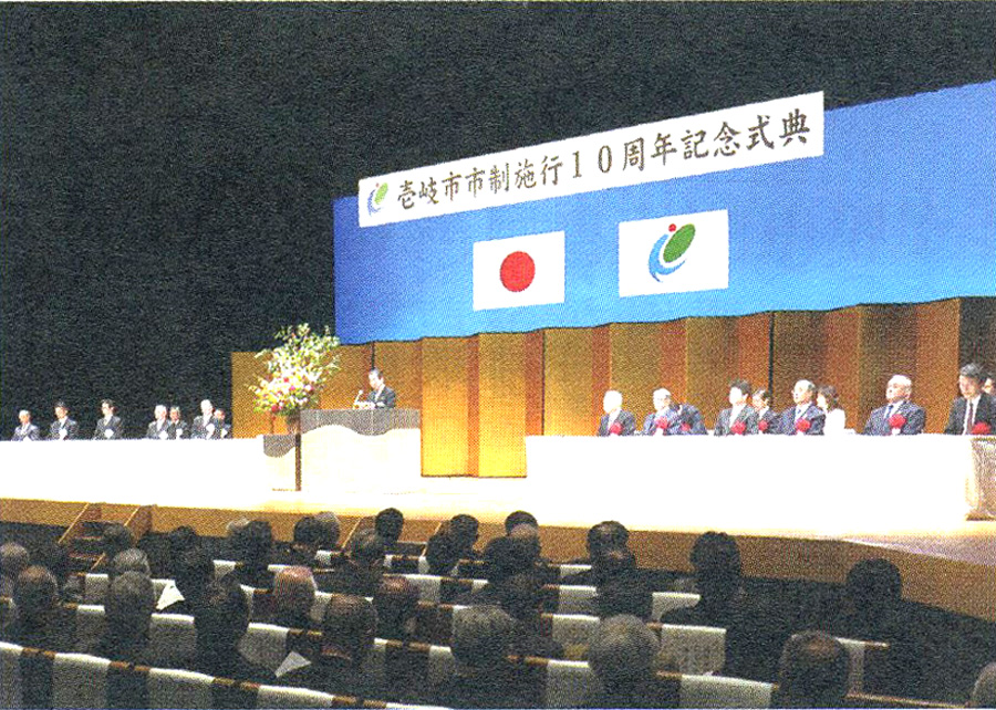 ![]() 市制施行10周年を祝う 文化ホールで記念式典、本市 本市は1日、市制施行10周年の記念式典を郷ノ浦町、文化ホールで開き、谷川弥一衆院議員、金子原次郎、古賀雄一郎両参院議員、中村法道知事、渡辺敏勝県議会議長らをはじめ本市議会、新市発足に携わった関係者、公民館長ら約500人が出席して10周年を祝った。 本市は平成16年3月1日、紅余曲折を経て郷ノ浦、勝本、芦辺、石田の旧4町が合併して市としてのスタートを切り、この10年間で県埋蔵文化財センターと併設の市立・一支国博物館、統配合による中学校4校体制スタート、光ケーブル網の整備と市ケーブルテレビの開局、市学校給食センター、一般廃棄物処理施設の整備など、「歴史を活かす癒しのしま、壱岐」として「住んで良かった」と思える島づくりが進み、財政運営の効率化も進んできている。 式典では表彰や市歌「壱岐洋洋」の合唱、市の健康・長寿体操「壱岐うらふれ体操」の披露なども行われた。 市制施行10周年 記念・市長表彰 ▼地方自治功労=長田徹(郷ノ浦町)、瀬戸口和幸(同)深見忠生(芦辺町)、牧永護(郷ノ浦町)、市山繁(同)、福田敏(勝本町)、長岡信一(郷ノ浦町) ▼社会福祉功労=山西實(芦辺町)、田ロチズ子(勝本町)山石重光(同) ▼保健=環境功労壱岐島健康会議、市食生活改善推進員協議会 ▼産業(農林)=白川永利(芦辺町)、齊藤秀和(勝本町) ▼産業(水産)=塚元富夫(郷ノ浦町) ▼交通安全・防犯=福田靖人(勝本町) ▼消防・防災=医療法人玄州会・光武内科循環器科病院、市消防団石田地区第2分団第3小隊、 市消防団芦辺地区第1分 団、市消防団芦辺地区第6分団 ▼教育文化=川上京子(勝本町)、瀬川伸幸(芦辺町)、松永利孝(芦辺町)、むぎ焼酎壱岐遠山の金 さん ▼優良団体=東京壱岐雪州会、東海壱岐の会、関西壱岐の会、福岡壱岐の会、壱岐・島おこし応援隊「チーム防人」、あおぞら隊、市民共有憩いスペース ![]() |