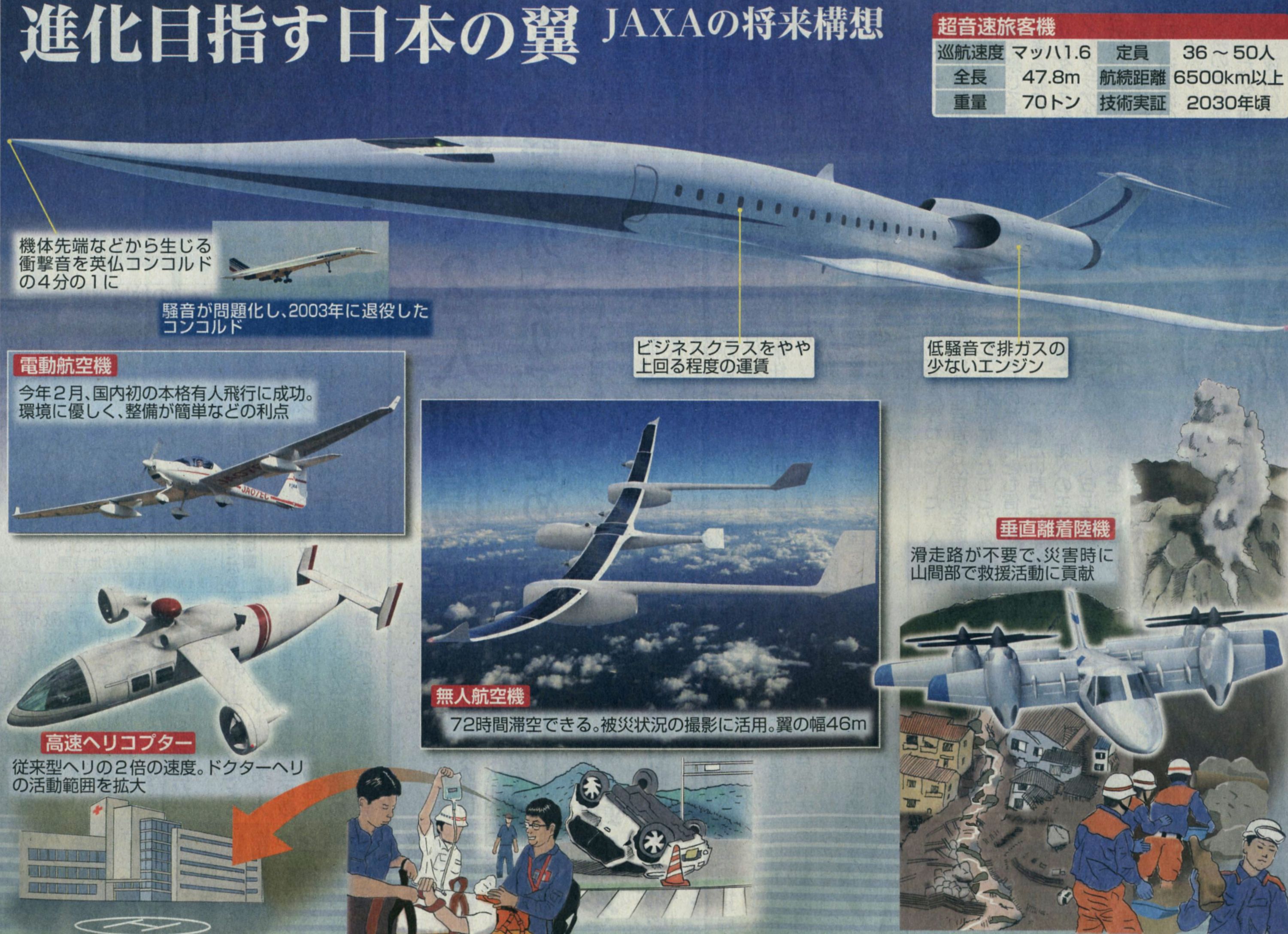 ![]() 未来の国産航空機 夢の超音速、復活に挑む「電動有人」も国内初飛行 国産初のジェット旅客機MRJ(三菱リージョナルジェット)が試験飛行に成功し、新時代の扉を開けた日本の航空機。宇宙航空研究開発機構(JAXA)は、その先にある未来の機体について研究を進めている。超音速旅客機や電動航空機など多彩な翼が大空を舞う日が来るかもしれない。(草下健夫) ■15年後にも実証飛行 超音速機として名高いコンコルドは英国とフランスが共同開発し、1969年に初飛行した。夢の旅客機として脚光を浴びたが、激しい騒音や燃費の悪さから2003年に退役。超音速旅客機は世界の空から姿を消した。JAXAはその復活をかけて研究を続けている。最大の懸案である騒音の正体は、機体の先端や後端で空気が圧縮されて起きる爆発のような衝撃音。研究チームは機首をカモノハシのくちはしに似た形にするなどし、これを大幅に減らす設計を考案した。 今年7月の無人機によるマッハ1・39の飛行実験で、機体の先端と後端の両方で衝撃音を低減させることに世界で初めて成功した。50人乗りの機体に適用すると衝撃音はコンコルドの約4分の1に減り、遠くの雷鳴が聞こえる程度に緩和されるという。 マッハ1・6の旅客機が実現すれば、日本からシンガポールなどに日帰りで出張できるようになる。文部科学省は30年ごろの実証飛行を目指す。開発費は2兆円規模とされ、国際協力が必要だ。 コンコルドの失敗を背景に、旅客機の開発は高速飛行ではなく大量輸送に重点が置かれるようになった。だがJAXAの吉田憲司プロジェクトマネージャは「高速移動の選択肢ができれば、大きな経済済効果を生むはずだ」と意義を強調する。 ■大出力電池で成功 地球温暖化を背景に、化石燃料を使わない電動航空機の開発も進んでいる。JAXAは今年2月、17分間の本格的な有人飛行に国内で初めて成功した。燃料の石油を電気に、エンジンをモーターに置き換えることで温室効果ガスの排出抑制につなげる。従来の電池では十分な距離を飛行できなかったが、軽量で大出力のリチウムイオン電池の登場で可能性が広がった。 燃料の配管が電線になるため整備を簡素化でき、油圧やエンジン温度の確認が不要になるなどパイロットの負担も減る。西沢啓主任研究員は「電池などをさらに軽量化することが課題。自動車産業など異分野の技術を積極的に活用する必要がある」と話す。 災害時に威力を発揮しそうなのが72時間の滞空撮影が可能な無人航空機だ。人工衛星は上空を通過するときにしか撮影できないが、無人航空機を併用すれば被災状況を長間監視できる。日本には山地や大都市など滑走路の建設が困難な地域が多い上、救助活動に使うヘリコプターは時速200キロ程度でしか飛べない。そこで角度を変えられる4枚の主翼とプロペラがついた垂直離着陸機や、速度が2倍の高速ヘリの開発を検討している。ドクターヘリの活動範囲拡大などに役立つと期待される。 ■設備とコストが課題 開発の壁は試験設備だ。飛行時の空気の流れを検証する風洞設備は不可欠だが、JAXAの施設は約半世紀前のもので故障が頻発しており、大規模な改修中。日本には実証用エンジンを備えた試験設備もない。次世代機の夢は膨らむが、開発には巨額の投資も必要で、費用対効果を冷静に見極める視点も求められる。 |