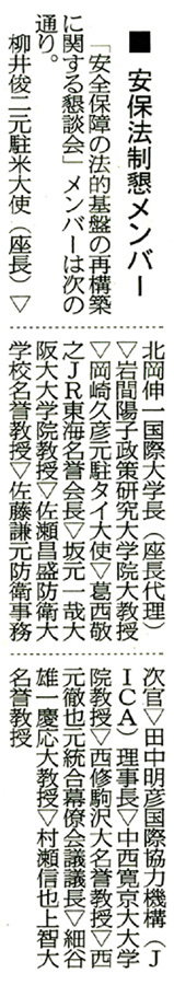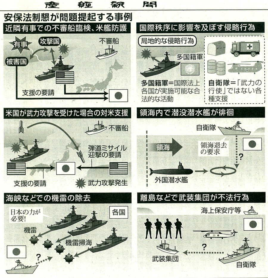| 平成26年(2014年)5月16日金曜日 政府の「基本的方向性」要旨 一国のみで平和守れない 有識者会議「安全保障の法的基盤の再構築に関する懇談会」の報告書を受けて考えるべきことは、私たちの命、平和な暮らしを守るため、何をなすべきかということだ。首相である私はいかなる事態にあっても国民の命を守る責任がある。人々の幸せを願って作られた日本国憲法が国民の命を守る責任を放棄せよと言っているとはどうしても考えられない。 南シナ海だけでなく、東シナ海でも日本の領海への侵入が相次いでいる。北朝鮮はミサイルの射程に日本の大部分を入れており、核兵器の開発も続けている。サイバー攻撃の脅威は瞬時に国境を越えてくる。もはやどの国も一国のみで平和を守ることはできない。これは世界の共通認識だ。だからこそ私は「積極的平和主義」の旗を掲げ、国際社会と協調しながら世界の平和と安定、航空・航海の自由といった基本的価値を守るため、これまで以上に貢献するとの立場を明確にして取り組んできた。 いかなる事態においても国民の命と暮らしは断固として守り抜く。安保法制懇の報告書では、そうした観点から提言が行われた。今後、政府・与党において、具体的な事例に即して、さらなる検討を深め、国民の命と暮らしを守るために、切れ目のない対応を可能とする国内法制を整備する。これまでの憲法解釈の下でも可能な立法措置を検討する。いわゆるグレーゾーン事態への対処を一層強化する。 さらにPKO(国連平和維持活動)や後方支援など国際社会の平和と安定に一層貢献していく。その上でなお、現実に起こり得る事態に対応して万全の備えがなければならない。国民の命と暮らしを守るための法整備が、これまでの憲法解釈のままで十分にできるのか、さらなる検討が必要である。こうした検討については「日本が再び戦争をする国になる」といった誤解がある。 しかし、そのようなことは断じてあり得ない。要旨が掲ける平和主義はこれからも守り抜いていくことを明確に申し上げたい。むしろ、あらゆる事態に対処できる法整備によってこそ抑止力が高まり、紛争が回避され、わが国が戦争に巻き込まれなくなる。報告書では、2つの異なる考え方を示していただいた。 1つは「個別的か集団的かを間わず自衛のための武力の行使は禁じられていない、国連の集団安全保障措置への参加といった国際法上、合法な活動には憲法上の制約はない」とするものである。しかし、これは、これまでの政府の憲法解釈とは論理的に整合しない。憲法がこうした活動の全てを許しているとは考えない。従って、この考え方は政府として採用できない。 もうーつの考え方は「わが国の安全に重大な影響を及ぼす可能性があるとき、限定的に集団的自衛権を行使することは許される」との考え方だ。生命、自由および幸福追求に対する国民の権利を政府は最大限尊重しなければならない。憲法前文、憲法13条の趣旨を踏まえれぱ、自国の平和と安全を維持し、その存立を全うするために必要な自衛の措置を取ることは禁じられていない。そのための必要最小限度の武力行使は許容される。 従来の政府の基本的立場を踏まえた考え方である。政府としては、この考え方について、今後さらに研究を進めていきたい。切れ目のない対応を可能とする国内法整備の作業を進めるにあたり、従来の憲法解釈のまま必要な立法が可能なのか、それとも一部の立法にあたり憲法解釈を変更せざるを得ないとすれば、いかなる憲法解釈が適切なのか。今後内閣法制局の意見も踏まえつつ政府としての検討を進めるとともに与党協議に入りたい。 与党協議の結果に基づき、憲法解釈の変更が必要と判断されれば、その点を含めて、改正すべき法制の基本的方向を、国民の命と暮らしを守るため、閣議決定していく。今後、国会でも議論を進め、国民の理解を得る努力を継続していく。十分な検討を行い、準備ができ次第、必要な法案を国会にお諮りしたい。 ![]() ![]() ' |