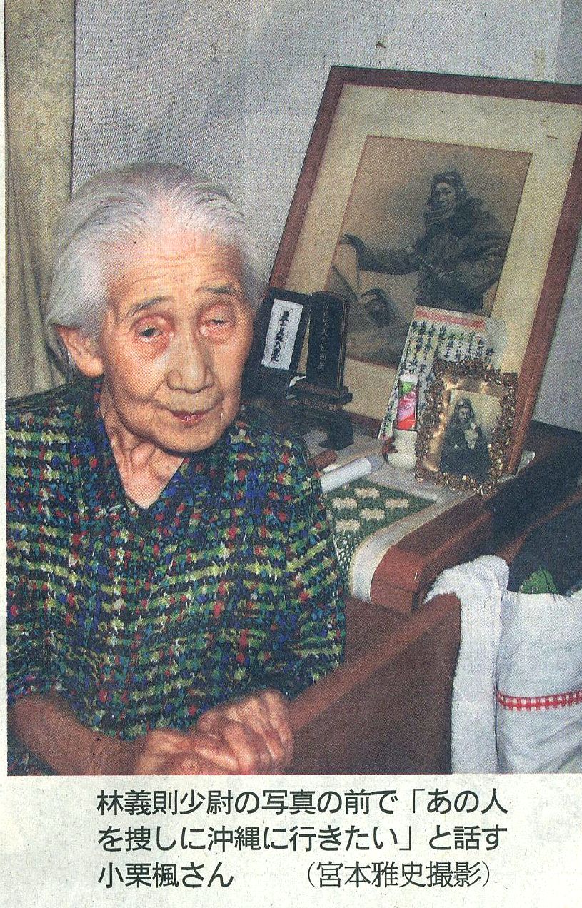 ![]() ![]() ![]() 別れの旋回うずくまる妻 秘めた慟哭「美化され…不安」 九九式襲撃機が突然、飛来した。昭和20年3月27日午前8時半ごろ、埼玉県桶川町(現桶川市)の上空。襲撃機は高度を下けると、1軒の民家の屋根と接触しそうなほど低空飛行で3回旋回した。風防ガラスを開け、手を振る操縦士の姿があった。その後、別れを告げるように翼を左右に振ると、西の空に消えた。 操縦桿を握っていたのは、5日後の4月1日に第23振武隊の隊長として鹿児島県の知覧飛行場を出撃し、沖縄近海で戦死した伍井芳夫大尉=当時(32)、戦死後中佐=だった。 自宅上空の旋回は時間にして数分。その間、妻の園子さんは家の中でうずくまり、両手で耳をふさいで襲撃機が飛び去るのを待っていた。当時、特攻隊員の妻は夫の出撃を胸を張って見送ることが務めだったといわれる。 次女の臼田智子さん(71)は言う。「送り出す側と送られる側、ともに心の中で激しい葛藤があったと思う。軍神の妻として人前で乱れることは許されなかった時代でしょうが、母は毅然としている自信がなかったのでしょう。別れのつらさと、それを人に見せられないつらさが相まって、姿を見せることができなかったのでしょう」 伍井大尉は上空旋回の2日前、自宅を訪ねていた。子供は2人の娘と約4カ月前に生まれたばかりの長男。3人の子供を一人一人抱き上げると記念写真を撮り、長男には「大きくなったら、お父さんの代わりにお母さんを守ってあげるんだ」と何度も話しかけたという。 別れ際、園子さんが「非常時、お国のためなら当然のことです。3人の子供をしっかり育てていきます。心置きなく出発してきてください。武運を祈ります」と告けると、大尉は「それでは任務に遙進(まいしん)致します」と答え、用意していた爪と髪の毛を渡した。夫婦で交わした最後の会話だった。婦で交わした最後の会話だった。 X X 園子さんが伍井大尉と結婚したのは14年3月。6年間の結婚生活だった。特攻要員の内命が下ったのは19年12月19日。当時、大尉は熊谷陸軍飛行学校桶川分教所で、見習士官や少年飛行兵の教育にあたっていた。 園子さんは、妻と3人の子供がいる夫には特攻命令が出るはずがないと信じていた。しかし…。戦後、智子さんに「教え子が特攻出撃することを黙って見ていられなかったのでは」と夫の心情を推し量っていた。 夫の死を知った園子さんに追い打ちをかけるような悲劇が襲った。大尉が特攻出撃して3カ月余り過ぎた20年7月21日、長男が自家中毒症で息を引き取ったのだ。2人の娘を育てるため、夫と息子を失った悲しみを抱えながら厳しい戦後が始まった。 「母は、父の部下だった人やご遺族とは極力付き合わないようにしていた。戦争を忘れよう、後ろは振り向かないと考えていたのだと思う。父の話は家庭内でも禁旬だった」。智子さんは当時を振り返る。 園子さんは桶川国民学校(現桶川小学校)の教師として教壇に立った。穏やかな園子さんだったが、子供たちが戦争映画を見て「かっこいい」と言ったとき、必ず叱っていたという。園子さんは智子さんに「時がたつにつれ、特攻も美化されていくような気がして、たまらなく不安になった」と話していた。 X X 園子さんは54年に教員を退職してから毎年、大尉の命日の4月1日に靖国神社に参拝した。毎年5月に知覧で開かれる特攻慰霊祭に参列したのは翌55年から。沖縄には一度慰霊に出向いたが「体が震えてしまう」と二度と行かなかった。 園子さんが68歳で息を引き取った3月25日は、くしくも、大尉が特攻出撃を控え、別れの挨拶のため最後に自宅に戻った日だった。智子さんは今でも、園子さんが病床で「私は激動の時代に生きた。人間としていろいろなことを経験した。人間として悔いはない」と話していたのをはっきりと覚えている。(編集委員宮本雅史) 3面に続く ![]() 一面から続く 「今日出撃」婚約者から最後のはがき 文通1年「私が本当に生きた時間」 筆者がその女性と初めて会ったのは10年余り前だった。女性は、第105振武隊の隊長として昭和20年4月22日、鹿児島県の知覧飛行場を出撃し、沖縄周辺海域で戦死した林義則少尉=当時(42)、戦死後大尉=の婚約者だった。小栗楓さん(95)。初めて会った日は林少尉の命日だっだ。 「私たちはあの人たちのおかけで生かさせてもらった。あの人たちの分まで生き抜かなければ…」。こう言うと部屋の遺影に何度も手を合わせた。「お墓にお参りさせてください」と言うと、彼女は「ちょっと待ってください」と言って腰を上げた。10分ほどして戻ってくると、薄化粧をし、きれいに身だしなみを整えていた。 楓さんと林少尉は岐阜県上之郷村(現御嵩(みたけ)町)生まれ。小学校の同級生で、2〜4年は同じクラス。5年のときに少尉が転校した。2人が再会したのは特攻出撃する1年前の19年3月23日。少尉が戦闘機の操縦士として訓練を受けるため満州に渡る挨拶に、楓さんが戸籍係として働いていた村役場を訪れた。別れ際、懐かしさのあまり